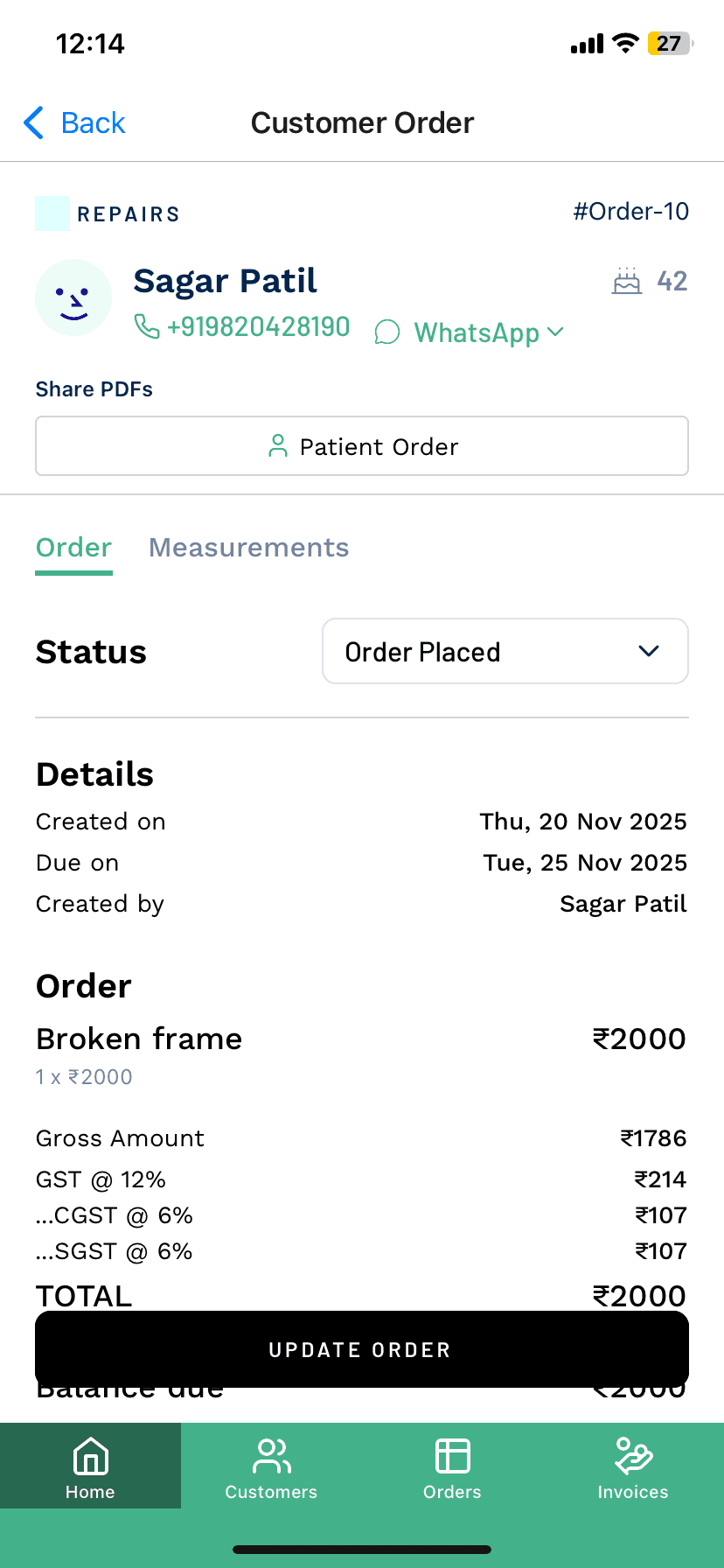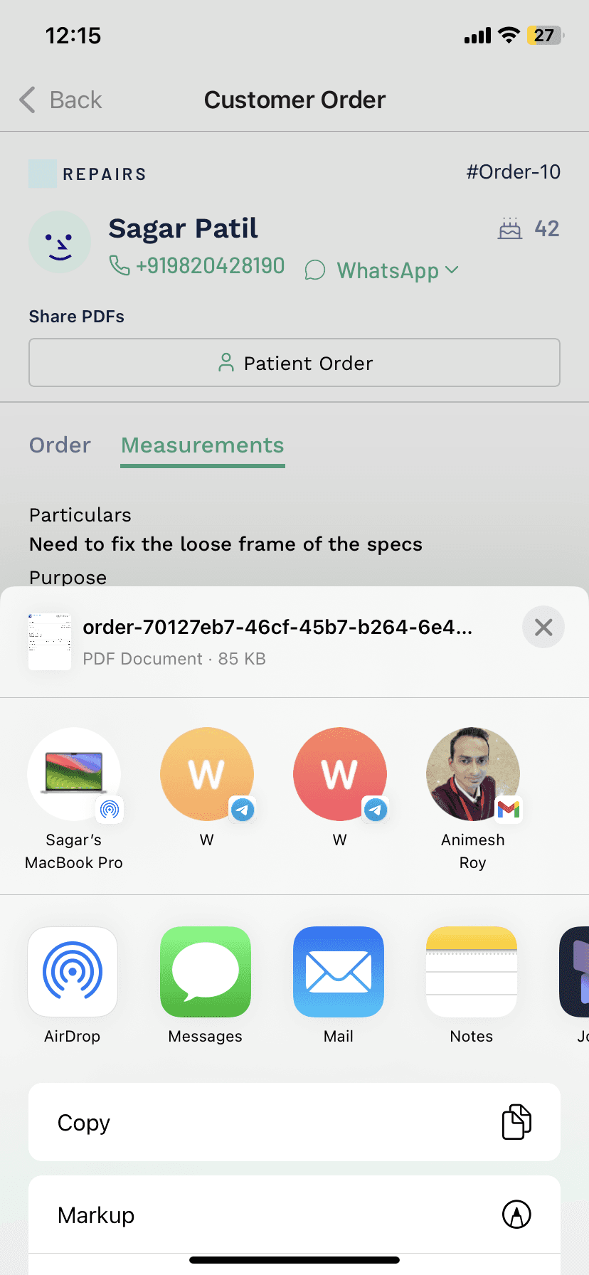 I created custom WA links that opticians could use to send to update customers about the status of their order or invoice. WA links allow the opticians to send WhatsApp messages to the customer directly from their official store phone number, instead of the message being sent via the WhatsApp API from an ASIRA phone number.