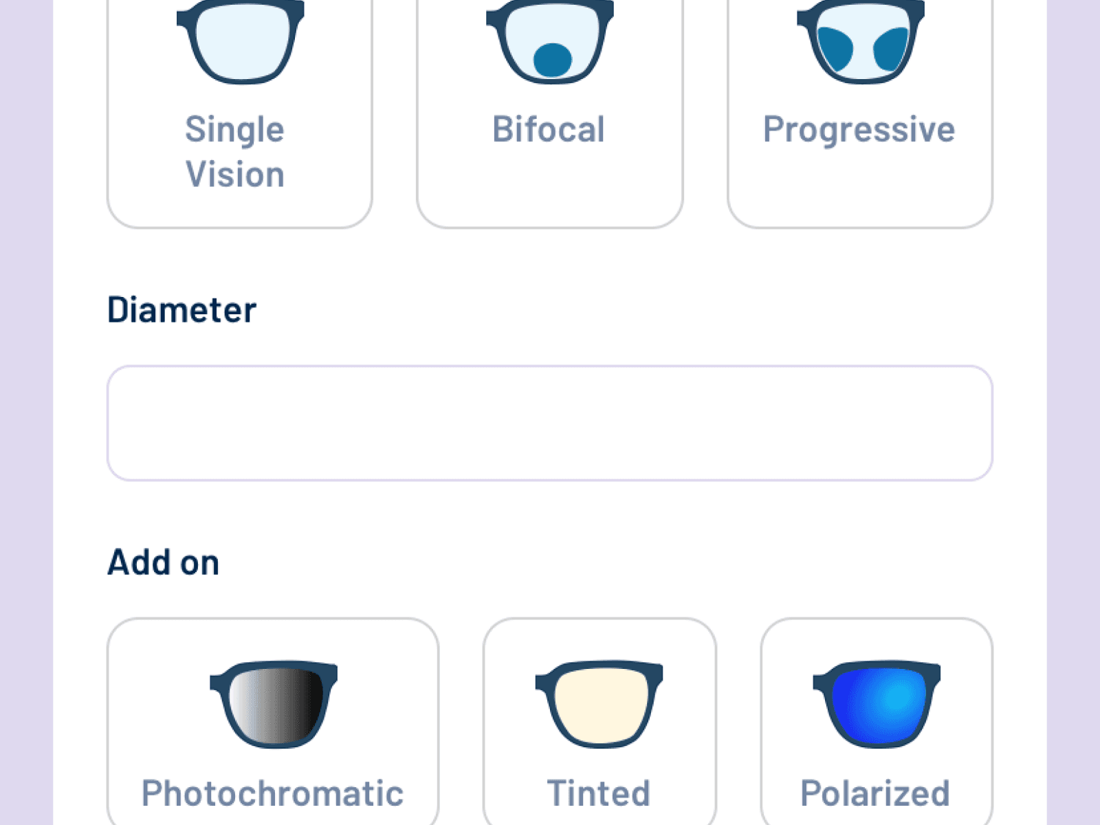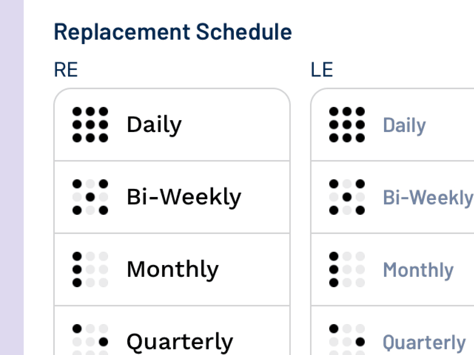 I used a 3x3 grid icon set to help opticians quickly find the replacement schedule they are looking for instead of having to read labels.