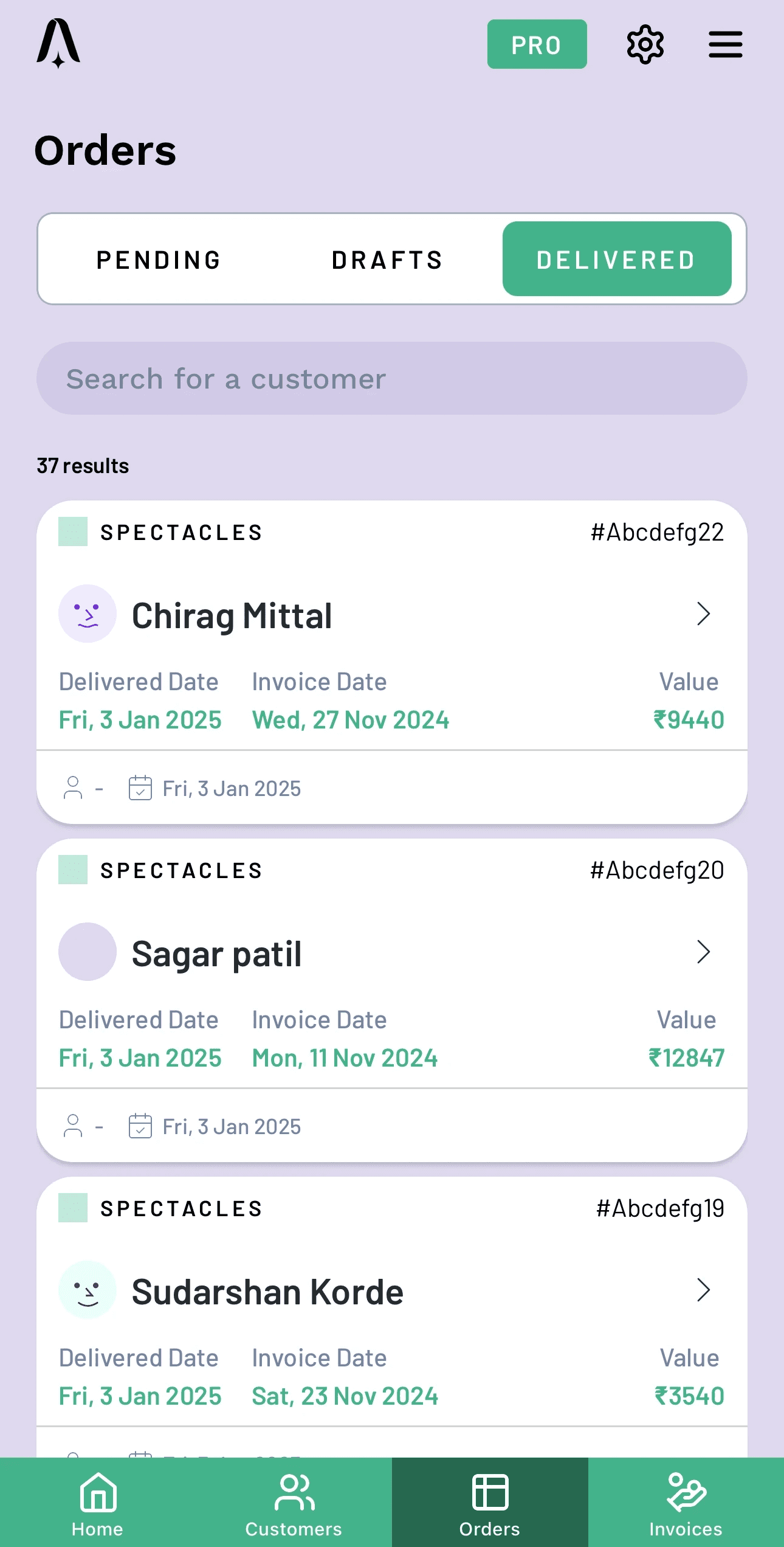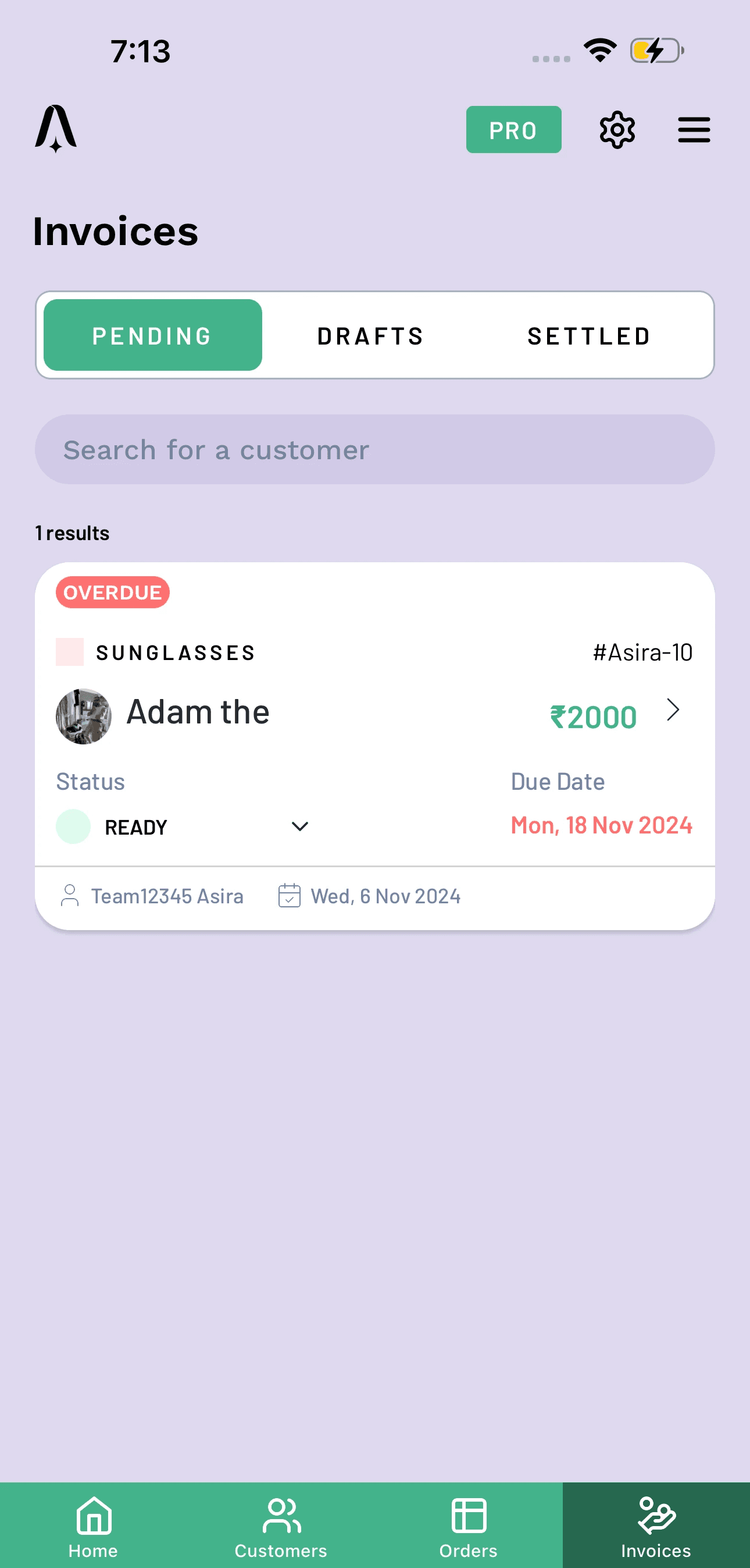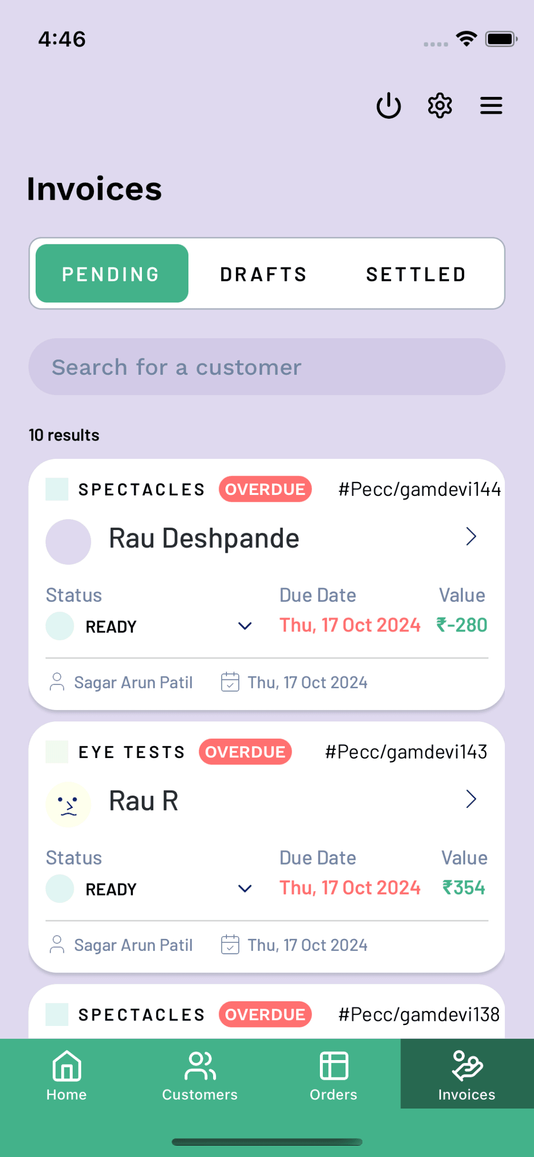 Only when the order is marked as READY FOR DELIVERY, an invoice is generated and shared with the customer. When the invoice has been SETTLED, the order is handed over to the customer and marked as DELIVERED.
