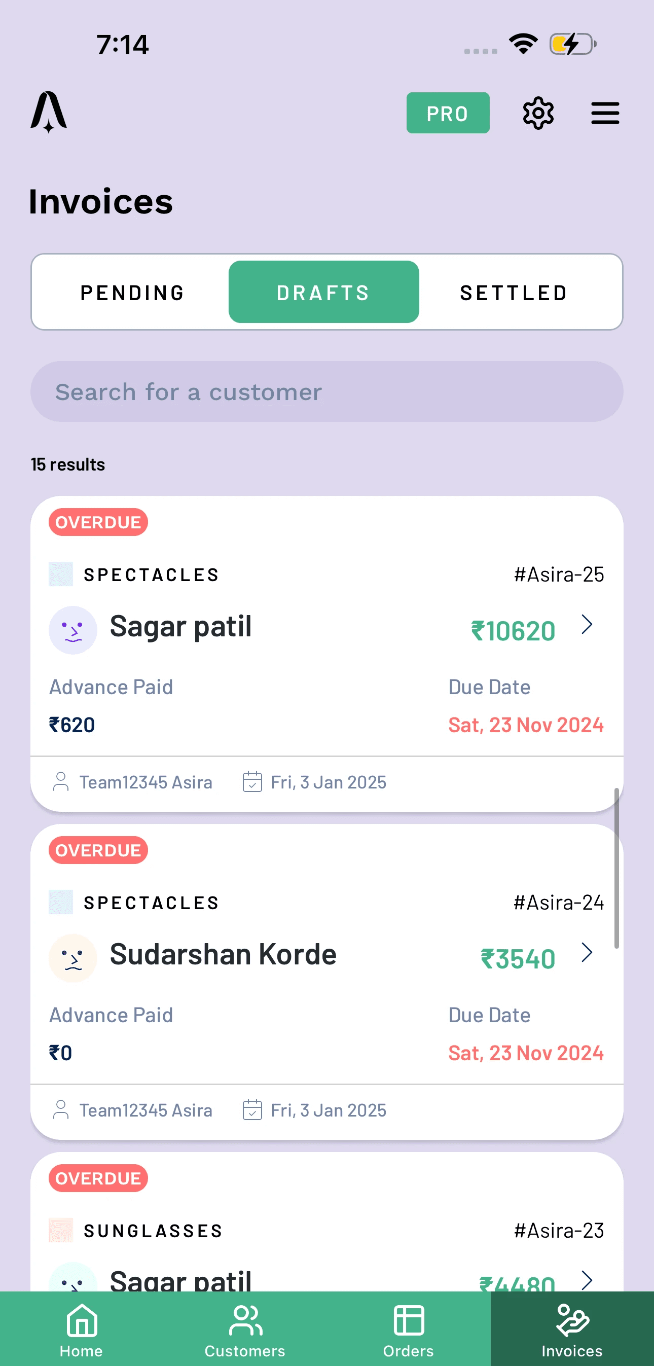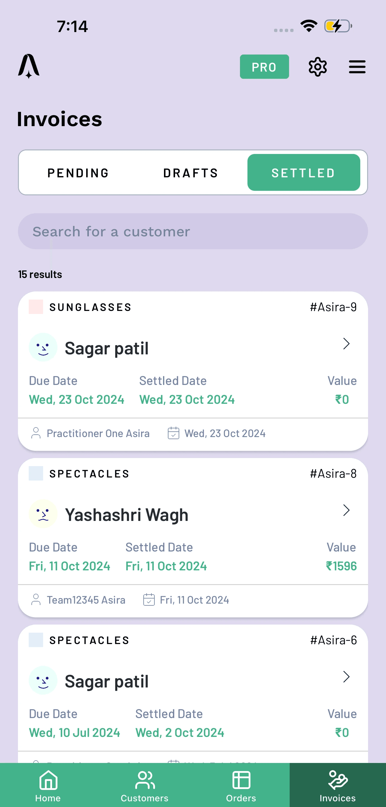 In the case of sunglasses or accessories where there is no fitting required, invoices are generated along with the order form and settled on the spot.