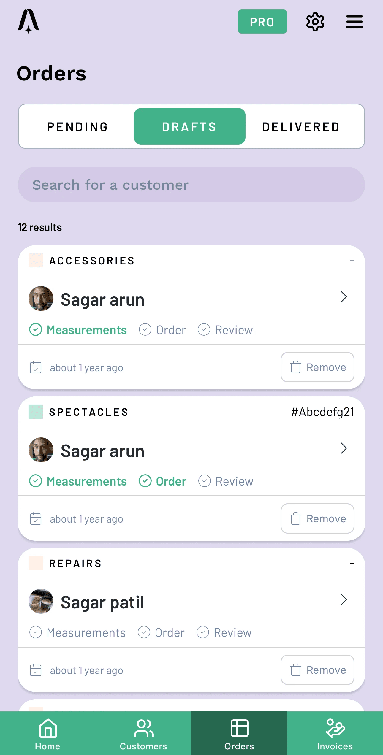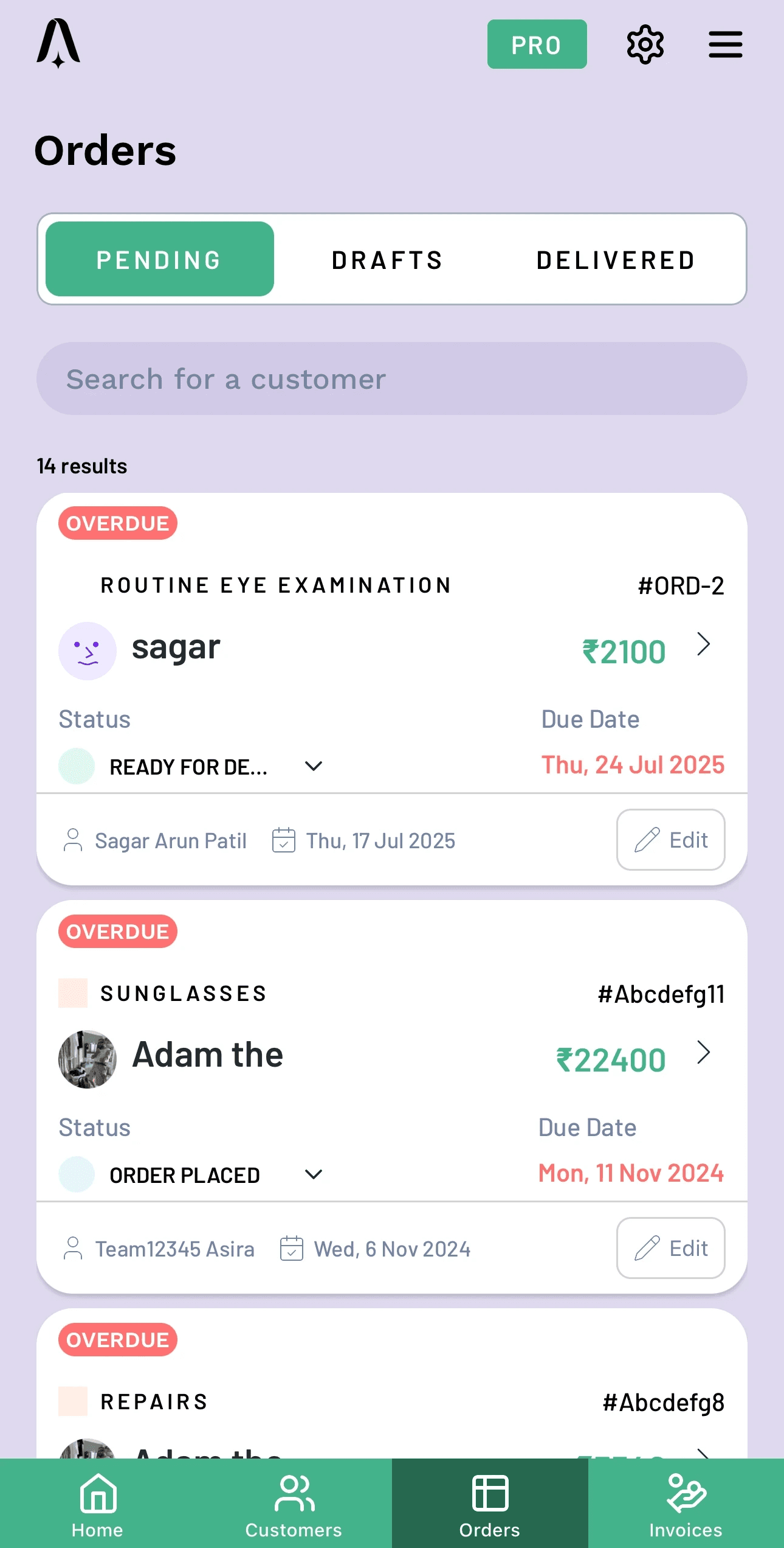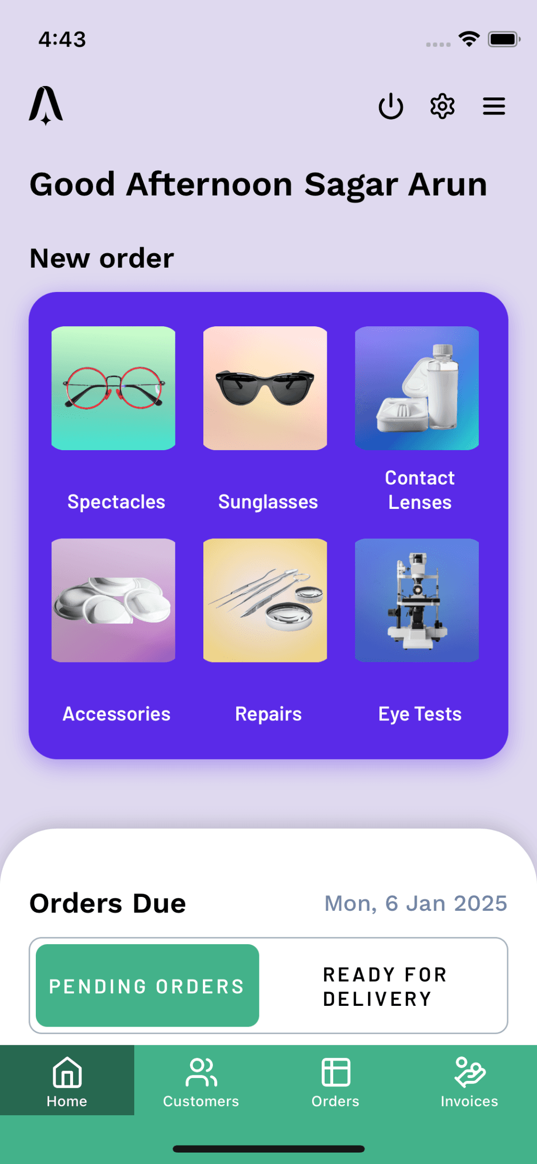 Manage inventory and product stock directly from the app. Many optical stores also expressed a desire to automatically place reorders for popular items that are low on stock.