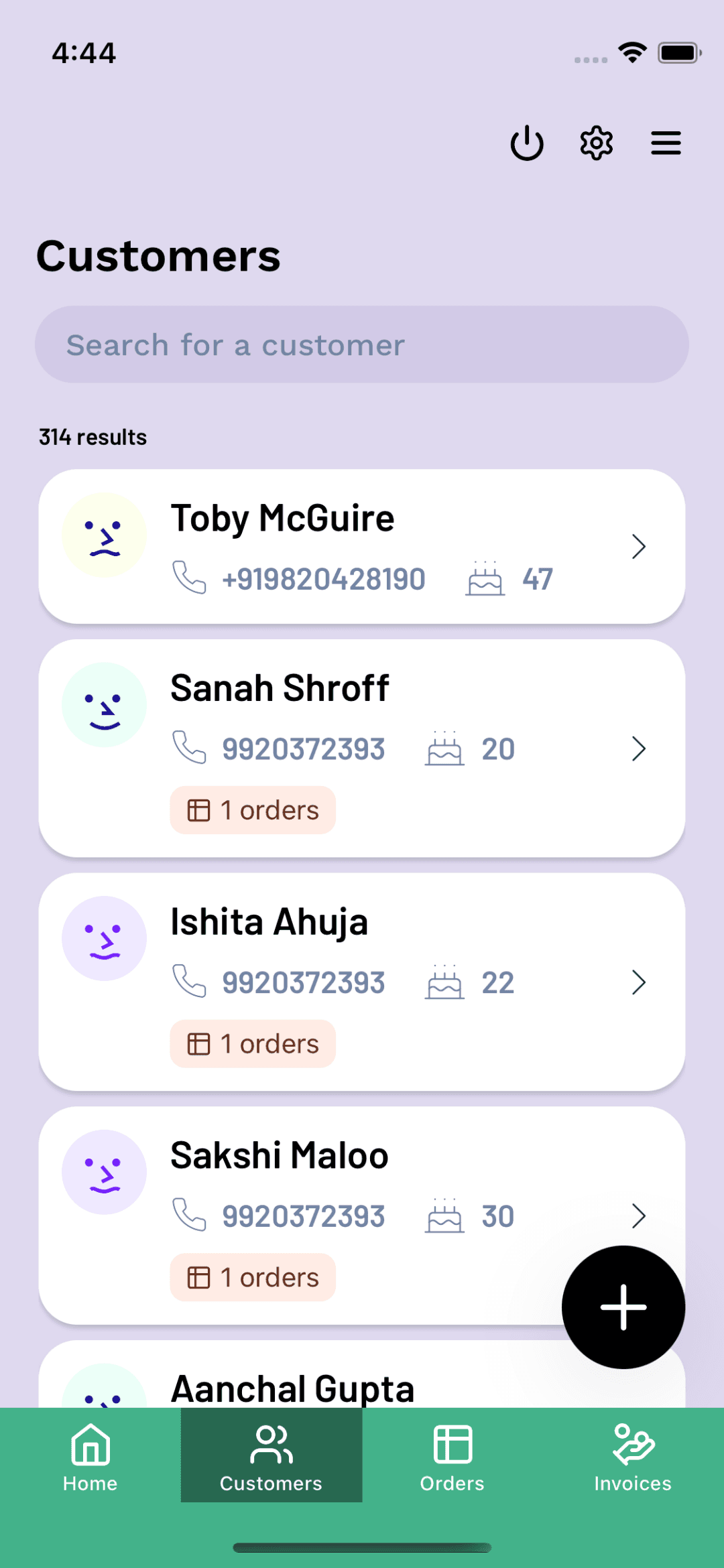 I implemented a bottom tabbed navigation for the primary navigation - Home, Customers, Orders & Invoices.