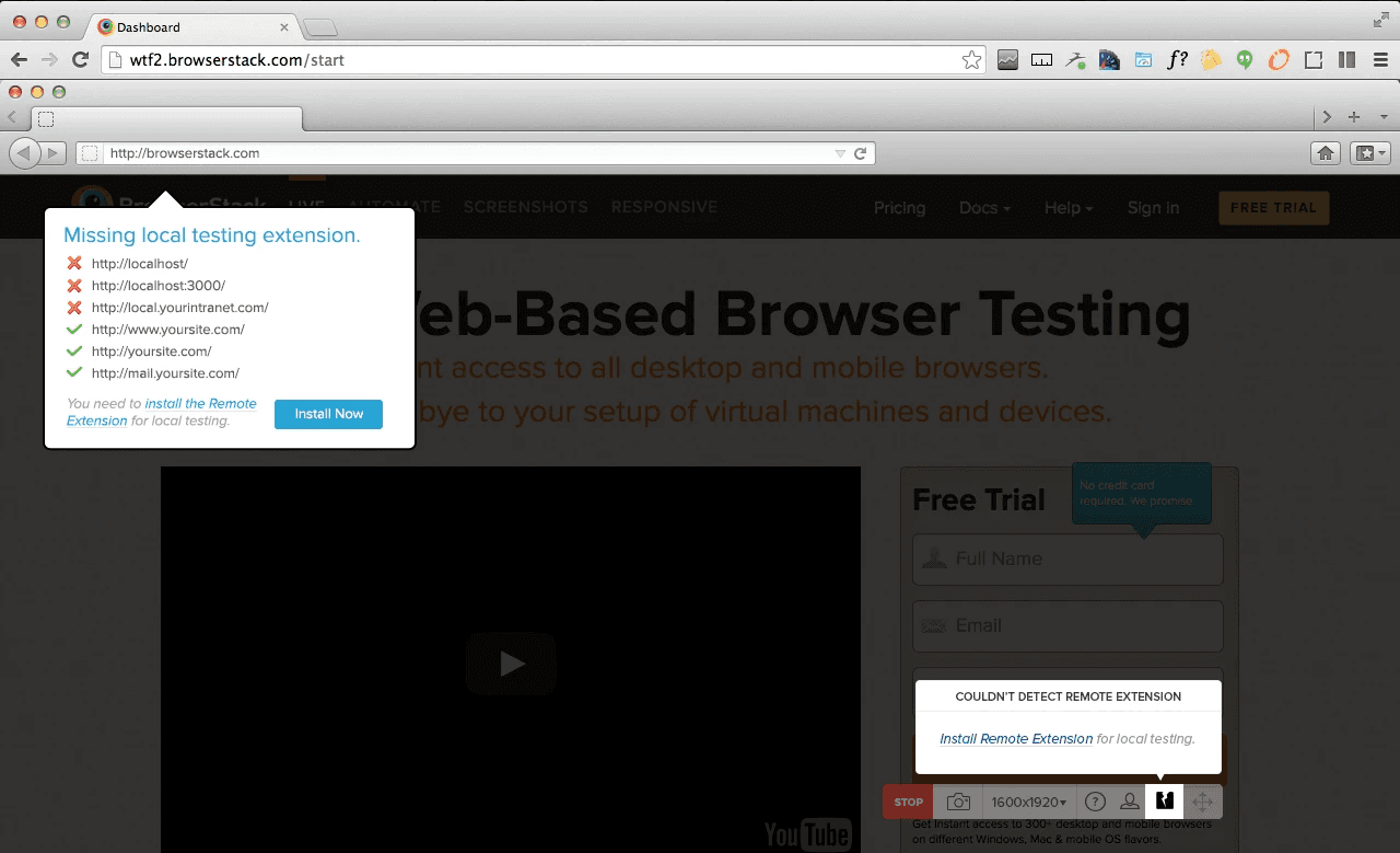 We built Chrome and Firefox extensions that created a secure connection between the user's computer and BrowserStack’s remote browsers. We moved the installation of the extension into the onboarding experience, to explain what it did and how it worked. If users opted-out, they could enable the extension at a later time from the toolbar.